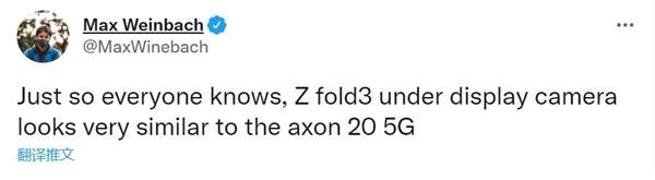 7月26日消息,知名爆料人士、Android Police主编Max Weinbach在推特爆料,三星Galaxy Z Fold3的屏下摄像头效果看起来与中兴 Axon 20非常相似。