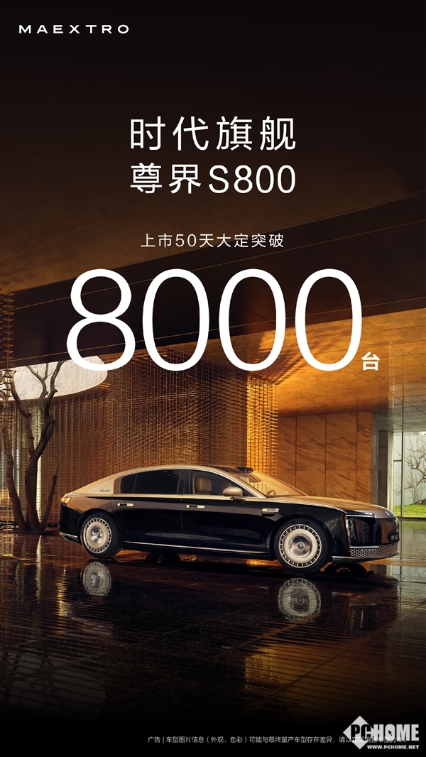 7月18日,尊界汽车旗下首款百万级豪华车型S800上市50天累计大定订单突破8000台。