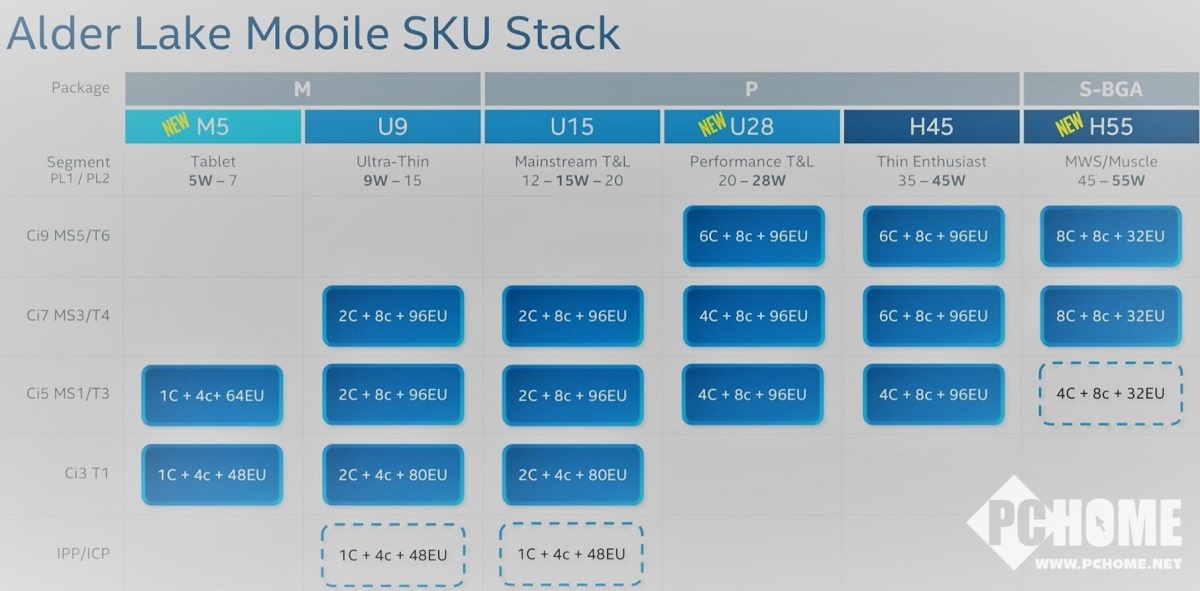 此前,据网友爆料,Intel下一代移动处理器将会根据TDP会将移动平台细分成六个市场,分别是45W-55W极致性能级笔记本电脑、35W-45W的发烧级笔记本电脑、28W的高性能平台电脑/笔记本电脑、15W的主流平板电脑/笔记本电脑、9W的超薄笔记本电脑以及5W的平板电脑/手持设备。