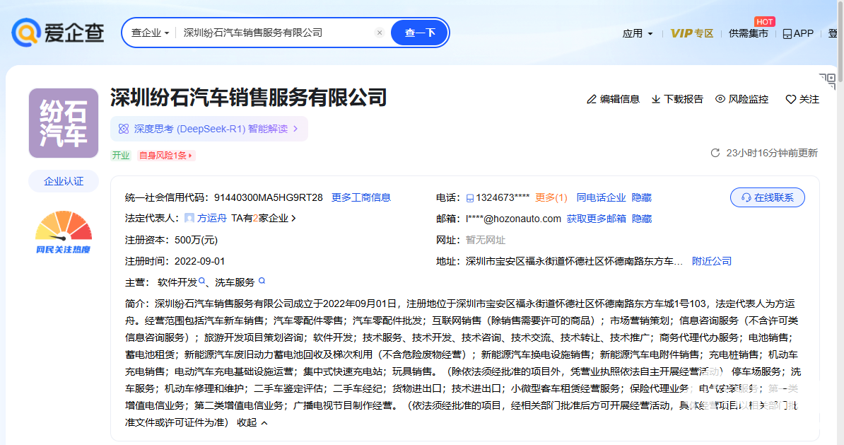 近日,爱企查App显示,深圳纷石汽车销售服务有限公司发生工商变更,刘磊卸任法定代表人、执行董事、总经理,方运舟接任法定代表人并担任董事、经理。此前,广州合达天下汽车销售服务有限公司也发生工商变更,刘磊卸任法定代表人、董事、经理,由方运舟接任。