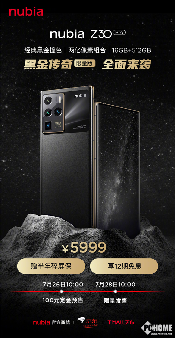 今年5月发布的努比亚Z30 Pro凭借2亿像素组合+120W超级快充+骁龙888等配置受到了广大消费者的青睐。今日全能旗舰c已于今日开启100元定金预售,售价5999元(16GB+512GB版),7月28日上午10:00限量发售,参与预定可享12期免息以及赠送半年碎屏险福利。