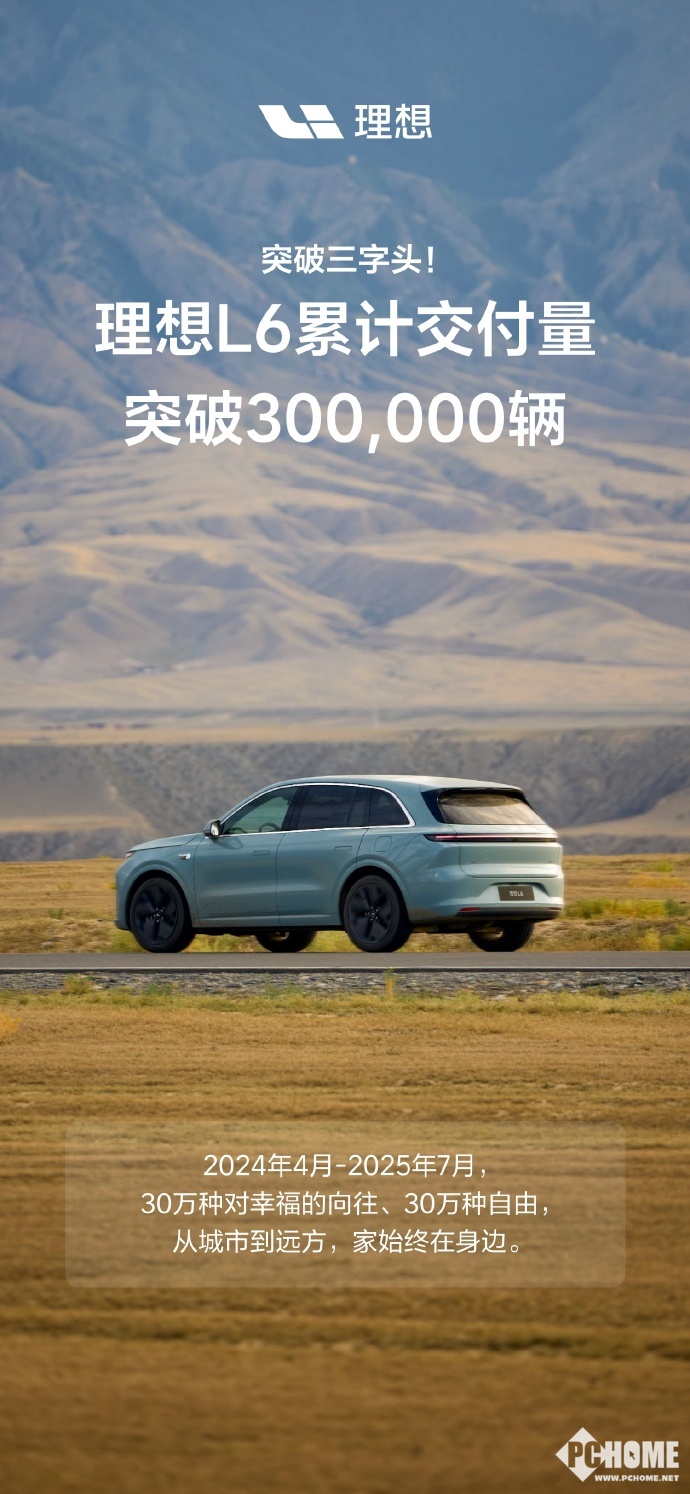 7月22日,理想汽车官方宣布,L6车型自2024年4月18日上市以来,累计交付量已突破30万辆。