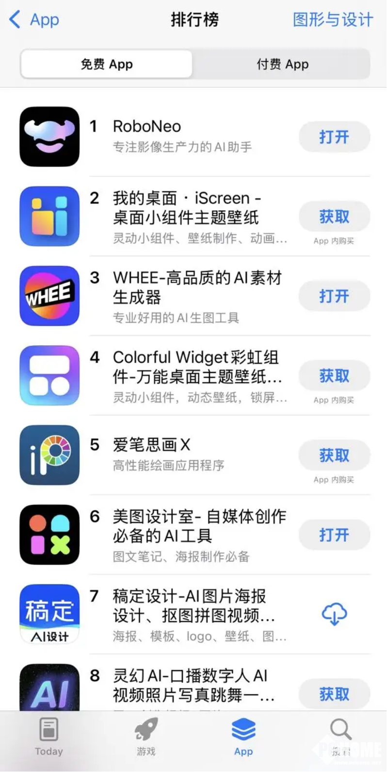 PChome发现,美图公司近期发布的AI Agent——RoboNeo,用户数量快速增长,已登顶国内App Store免费榜。