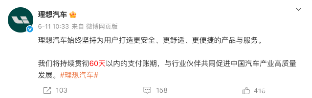 《中证报》记者从部分供应商处了解到,理想汽车已将供应商账期调整为60天。理想汽车回应称,在7月中旬已完成对所有直采供应商的账期调整。