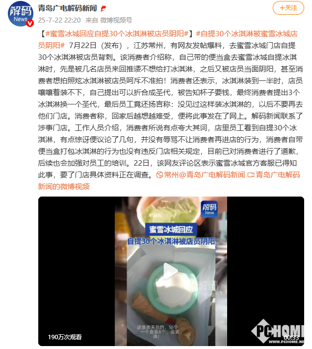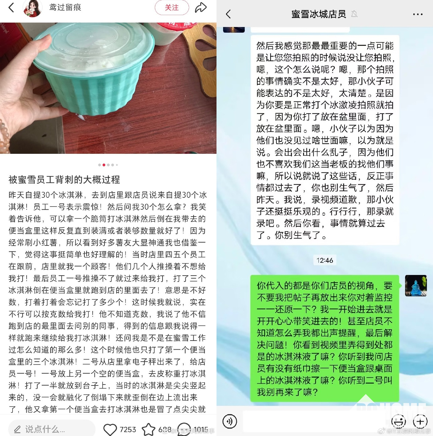 2025年7月23日消息,近日,江苏常州网友发帖称,自己携带便当盒去蜜雪冰城自提30个冰淇淋时,遭遇店员推诿,当她提出想给冰淇淋拍照时被店员呵斥,甚至有店员当面阴阳称,没见过这样装冰淇淋的,以后不要再来。