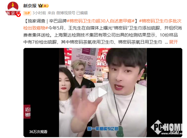 辛选官网显示,辛选集团为快手网红主播辛巴(本名辛有志)于2017年创立,棉密码是辛选集团旗下自营的女性卫生用品品牌,致力于研发专业、健康和可靠的女性卫生用品,更贴合新时代女性的身心诉求,让女生在体验中找到经期的舒适密码。据新京报报道,已有30余人自诉患有甲状腺癌,约35%的家庭中未成年女儿与母亲长期共同使用“棉密码”卫生巾,数百例消费者反馈红肿瘙痒闷痘炎症、妇科炎症、皮疹荨麻疹、甲状腺功能异常、甲状腺病变等硫脲关联病症。还有10例左右消费者自诉怀孕前使用“棉密码”卫生巾,怀孕后出现了胎停、葡萄胎、新生儿甲亢等情况。