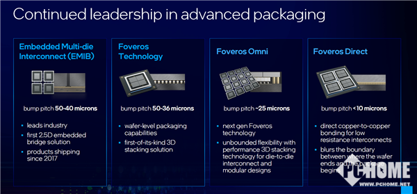按照Intel披露的最新信息,Foveros将具备晶圆级的封装能力,史上第一次提供3D堆叠解决方案,不同IP模块可以使用不同工艺,封装凸点间距(bump pitch) 36-50微米。