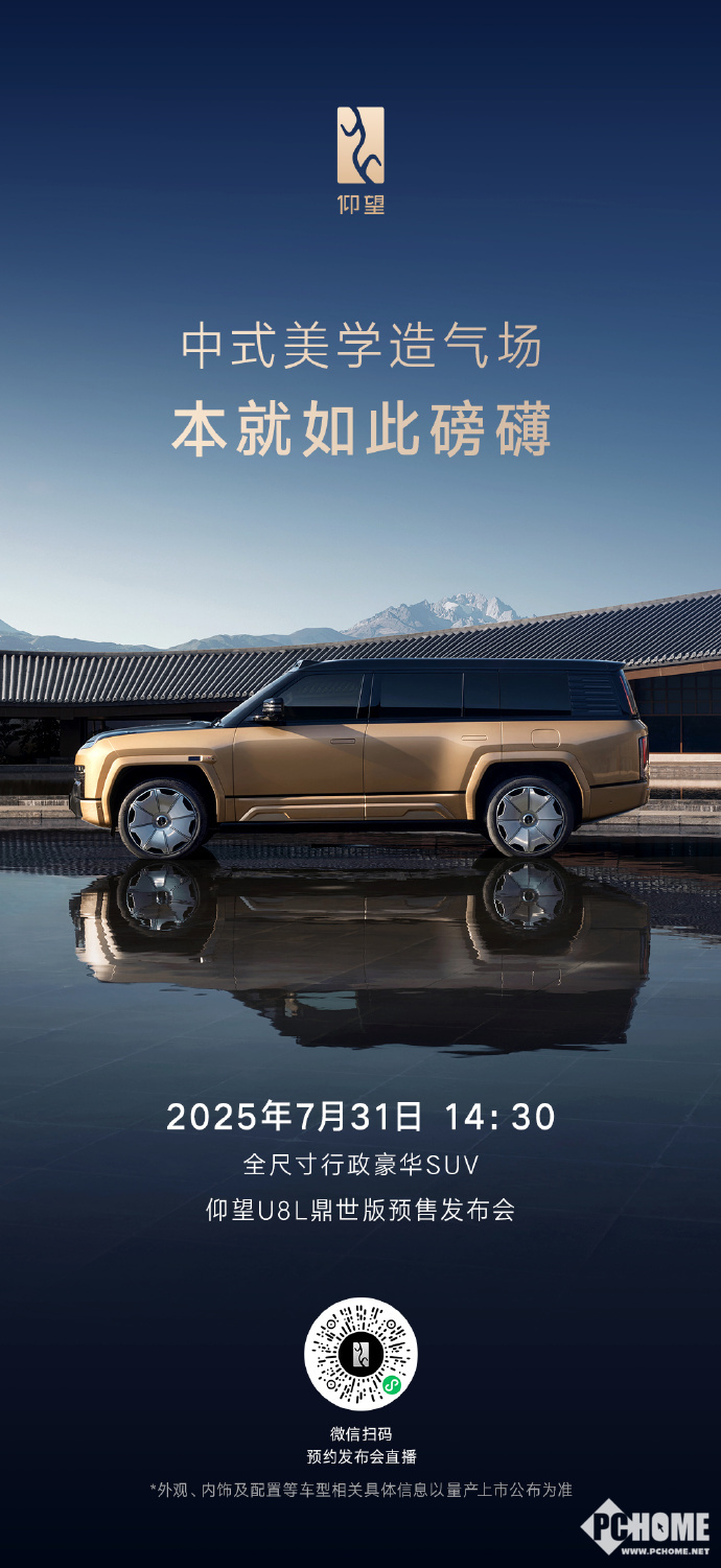 7月28日,比亚迪仰望今日官宣,仰望U8L鼎世版预售发布会将于7月31日14:30举行,新车定位“全尺寸行政豪华SUV”。