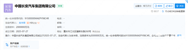 7月29日,企查查最新信息显示,中国长安汽车集团有限公司于7月27日在重庆正式注册成立,注册资本200亿元,由长安汽车董事长朱华荣担任法定代表人。这是继中国一汽、东风汽车之后,我国第三家汽车行业央企。