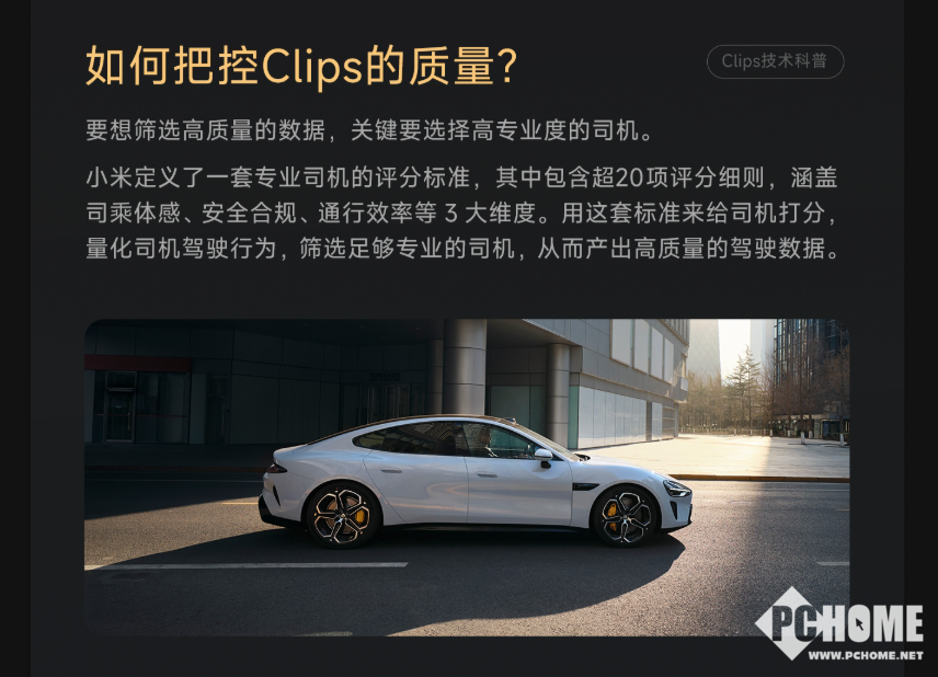 1000万Clips训练下的辅助驾驶模型,让控车更自然流畅。即便身处复杂环境,也能如老司机般轻松应对,给予用户“老司机开车”的乘坐体验。为保障质量,小米制定专业司机评分标准,超20项细则从司乘体感、安全合规、通行效率等维度,筛选专业司机,产出高质量驾驶数据。不过小米汽车也强调,辅助驾驶技术实际使用仍需注意观察路况,及时干预车辆。