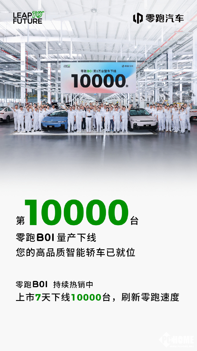 7月30日,零跑汽车今日官方宣布,零跑B01上市7天下线10000台,刷新零跑速度。零跑B01为零跑汽车旗下B系列首款纯电轿车,于7月24日上市,官方指导价8.98万至11.98万元,上市72小时锁单10132台。