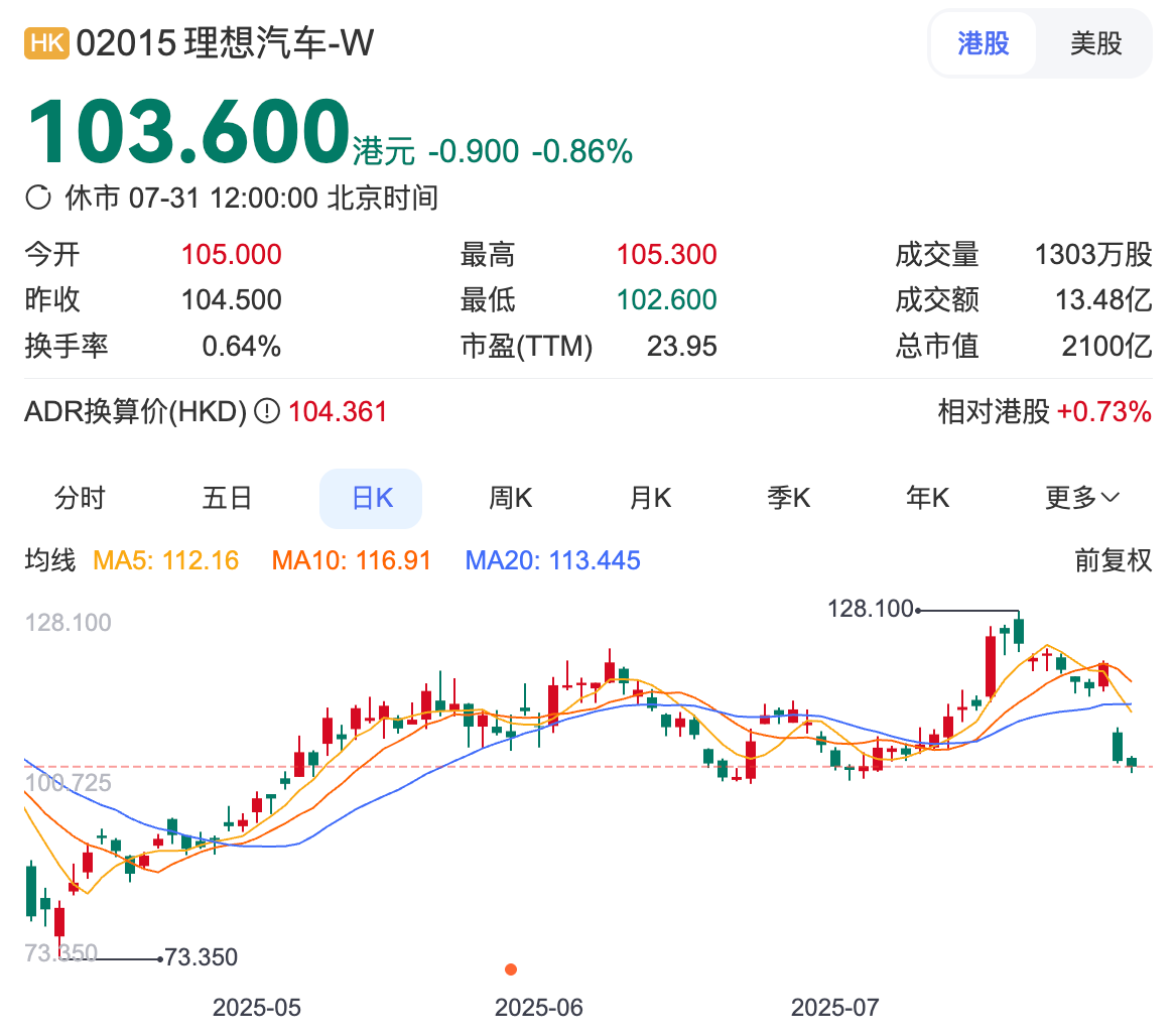 然而需要注意的是,资本市场却对理想i8反映冷淡。7月30日,理想汽车股价暴跌12.84%,报收104.5港元/股,相较摩根大通的目标价有明显差距。