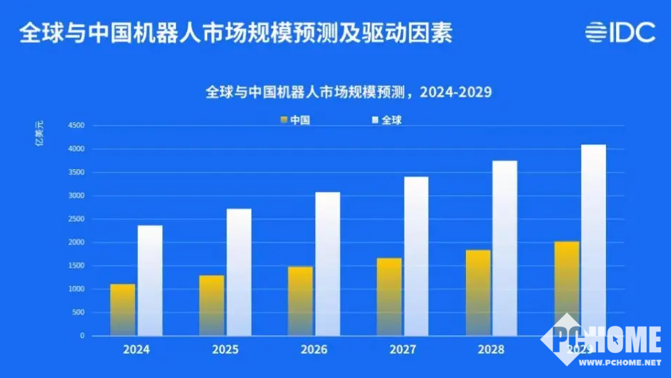 7月31日,国际数据公司(IDC)今日发布了全球与中国机器人市场规模预测,他们表示,到2029年全球机器人市场规模将超过4,000亿美元。其中,中国市场占据近半份额,并以近15%的复合增长率位居全球前列,成为推动全球机器人产业增长的核心引擎。