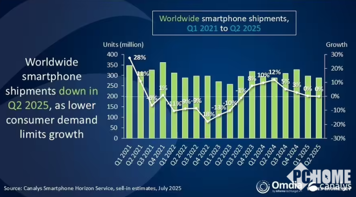 8月1日,市场调研机构Canalys于昨日发布报告显示,2025年第二季度全球智能手机出货量为2.889亿台,与去年同期基本持平。