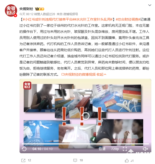 8月4日,央视财经曝光了在小红书上违规代打水光针的乱象。