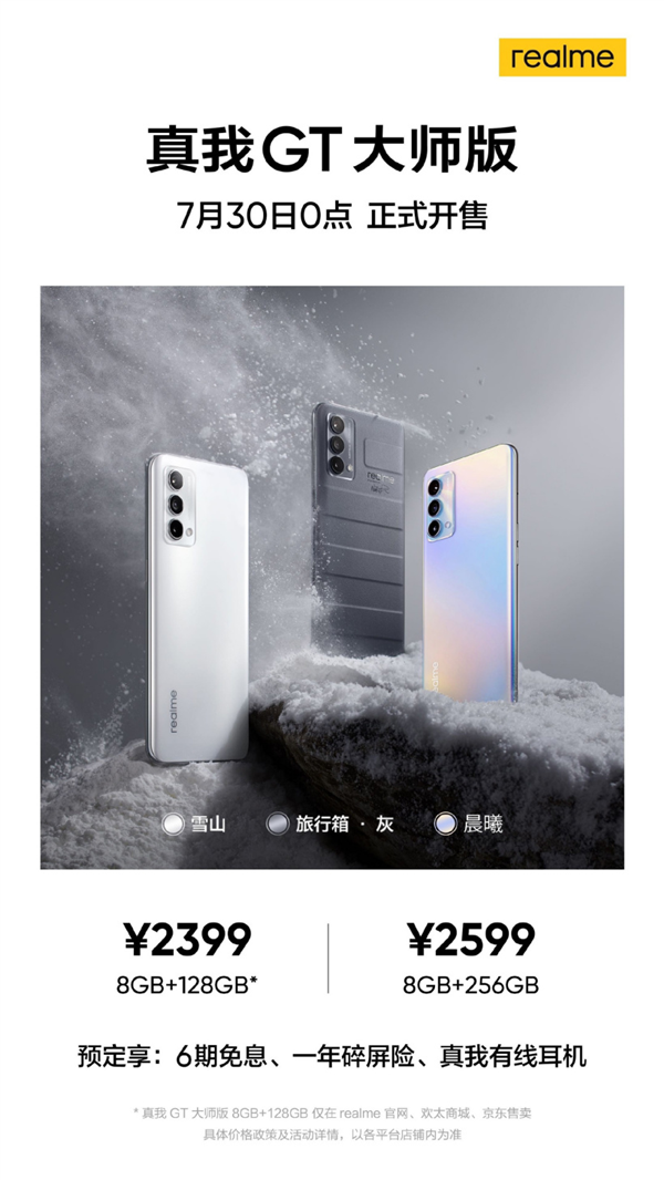 realme GT大师版将于今晚12点正式开售,其中8GB+128GB、8GB+256GB的售价分别为2399元和2599元,近日想要购换新机的小伙伴可要定好闹钟了。realme GT大师版采用金属中框方案,提供晨曦、雪山版以及旅行箱・灰(3D素皮后盖+深泽直人设计)配色。