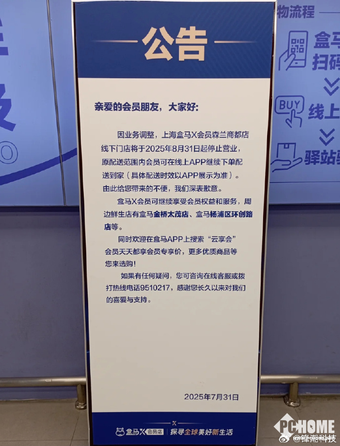 8月5日,据经济观察报昨晚报道,盒马X会员店上海森兰店客服确认该店也将于8月31日停业。至此,盒马的所有会员店全部停业。