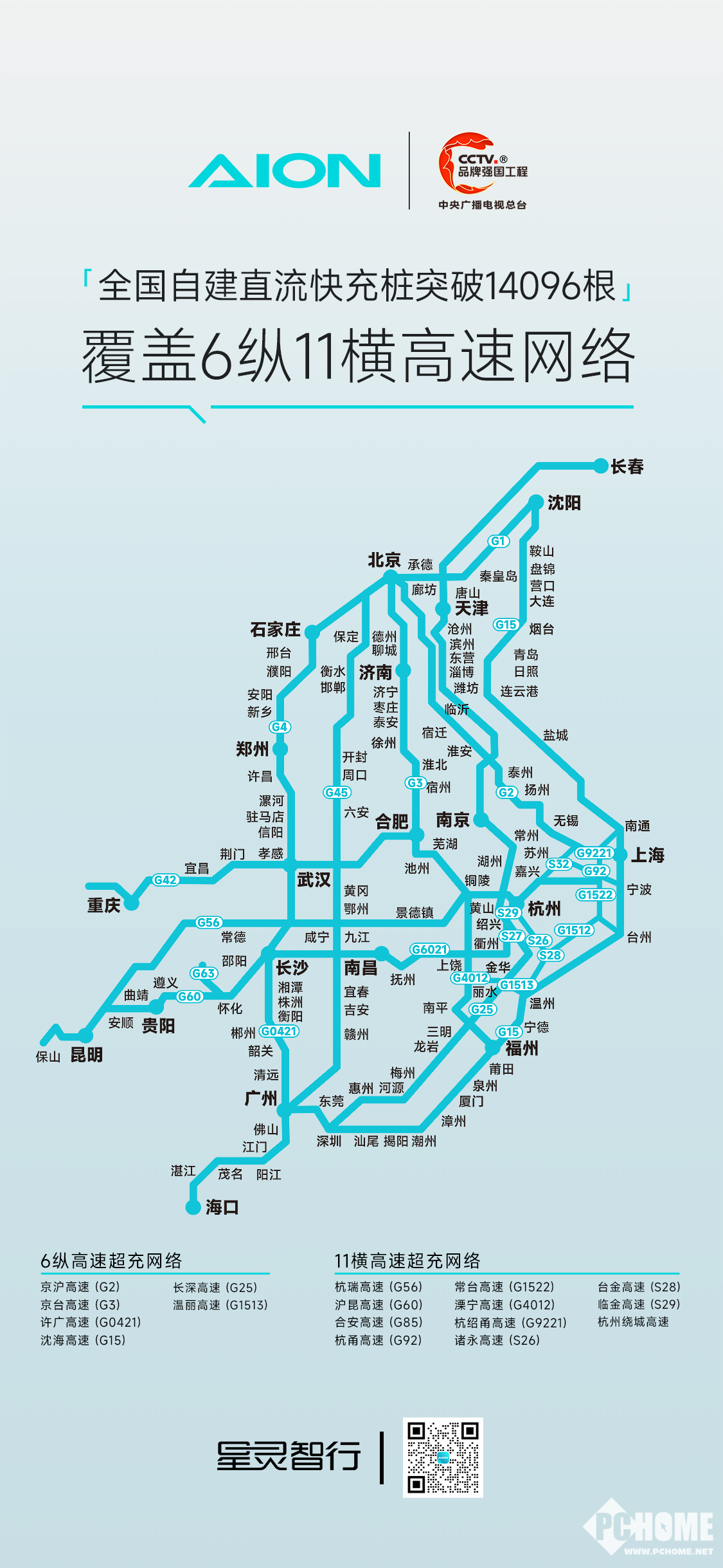 8月5日,广汽埃安官方今日发文宣布,完成“6纵11横”高速超充网络覆盖,全国自建直流快充桩突破14096根。