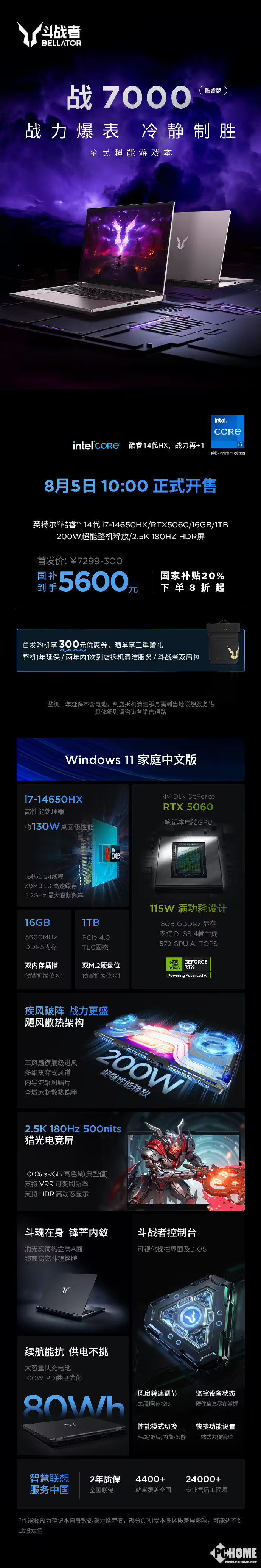 8月5日,联想旗下来酷品牌发布的斗战者战7000酷睿版游戏本于上午10:00正式开售,首发定价6999元,在叠加国家补贴后最低可至5599.2元。据电商平台显示,该产品上线当天即售罄。