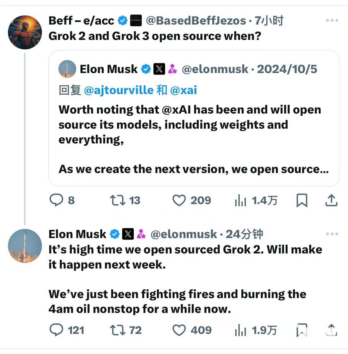 8月6日,据马斯克通过社交平台X公开回应用户提问时表示,其AI公司xAI计划于下周开源Grok 2模型。xAI将进一步推进人工智能模型的开放策略。