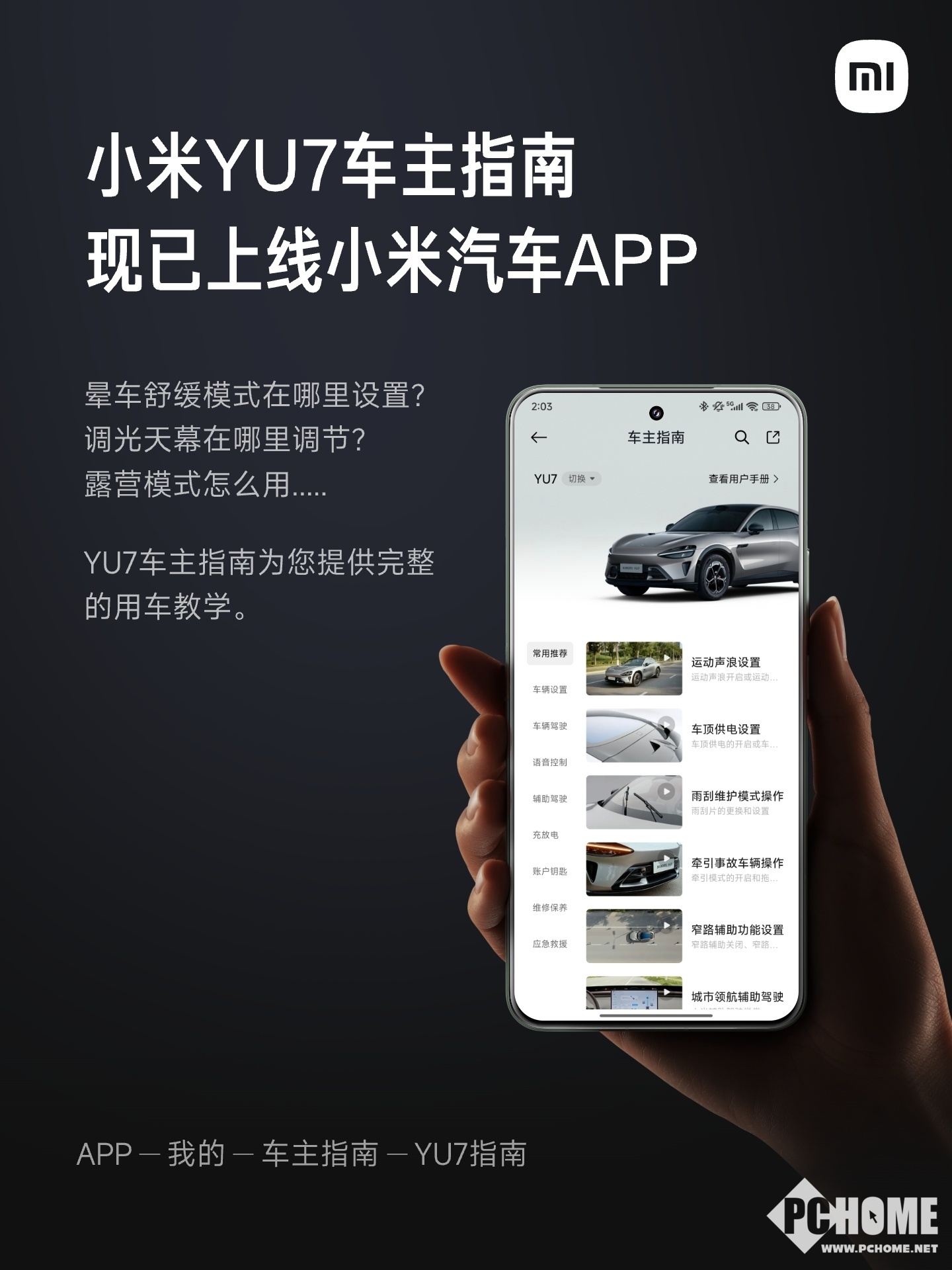 2025年8月6日,小米汽车官微发布消息称,小米YU7车主指南正式上线小米汽车APP,可以为YU7车主提供完整的用车教学。