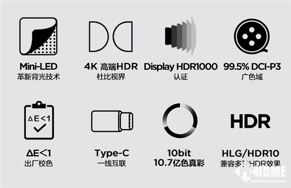 它采用IPS面板,1万颗mini LED背光,1152分区控制,典型亮度可达620nit,峰值亮度1200nit,不仅支持超强的杜比视界,还通过了“VESA DisplayHDR1000”认证。
