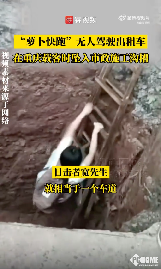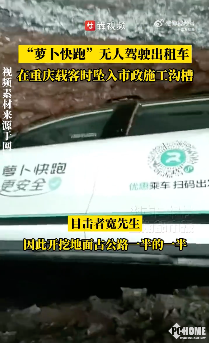 山海视频报道,多名网友发视频称,重庆永川区内环东路附近,一辆萝卜快跑无人驾驶车在行驶中坠入市政施工沟槽。