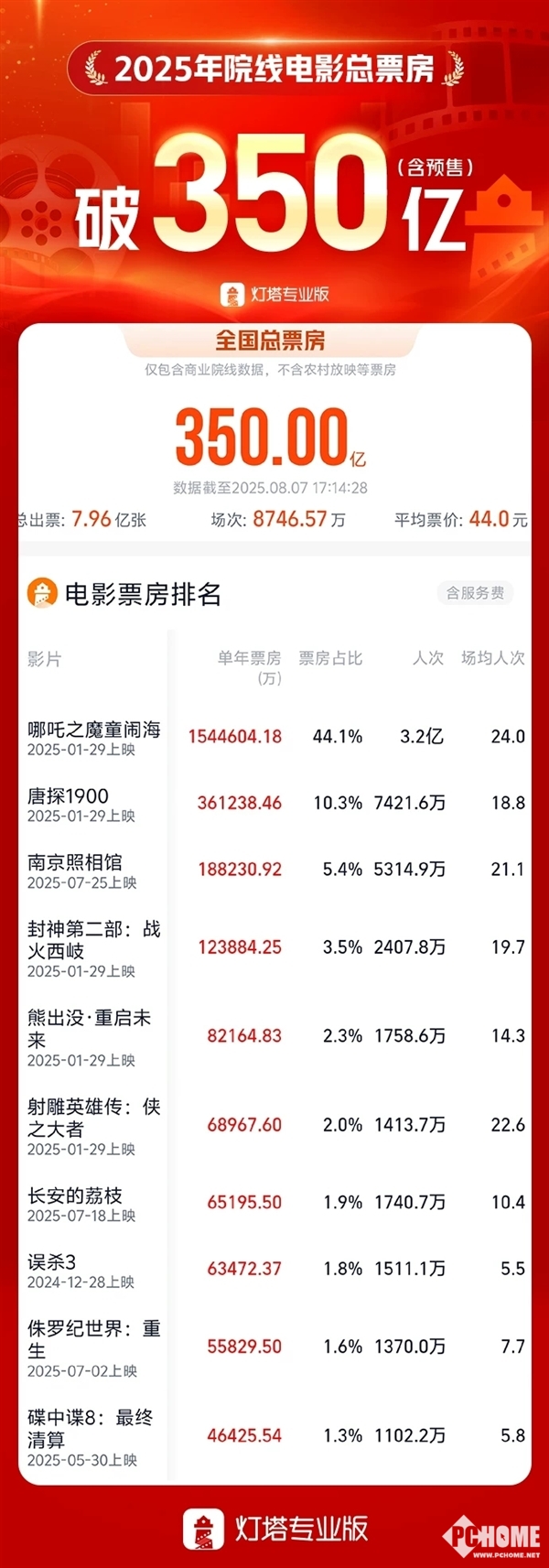 8月7日,据灯塔专业版数据显示,截止2025年8月17日17点,2025年中国电影市场总票房(含预售)已突破350亿元,达成这一成绩仅用219天,较去年提前55天,展现出强劲的市场复苏态势。