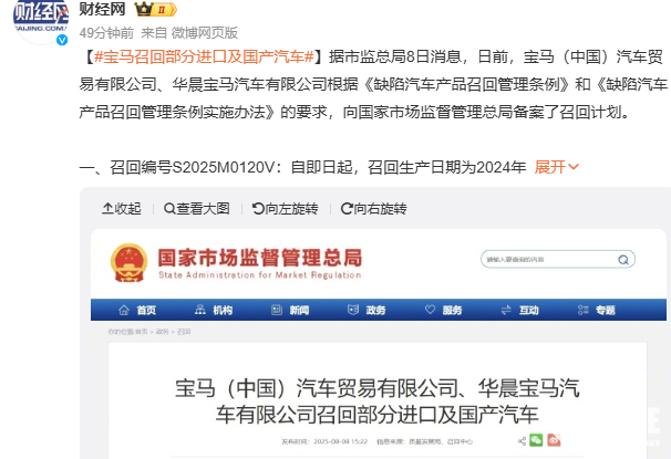本次召回为2025年5月9日发布的《宝马(中国)汽车贸易有限公司、华晨宝马汽车有限公司召回部分进口及国产汽车》召回活动的扩大召回。