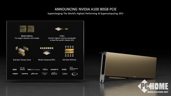 此前有消息称,NVIDIA将发布新款PCIe版本的A100加速计算卡。果不其然,今日,NVIDIA今天正式发布了新版A100加速计算卡,显存容量从 40GB 翻番到 80GB,类型也从 HBM2 升级为 HBM2e,官方称可达 25-200%,AI 训练能效也可以提升 25%,简直就是天下无敌!