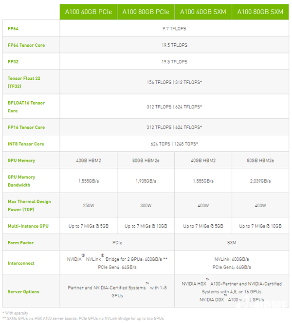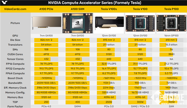 虽然形态不同、显存不同,但核心性能是一致的,而更多的显存,可以为HPC、AI等带来更好的实际性能、能效。