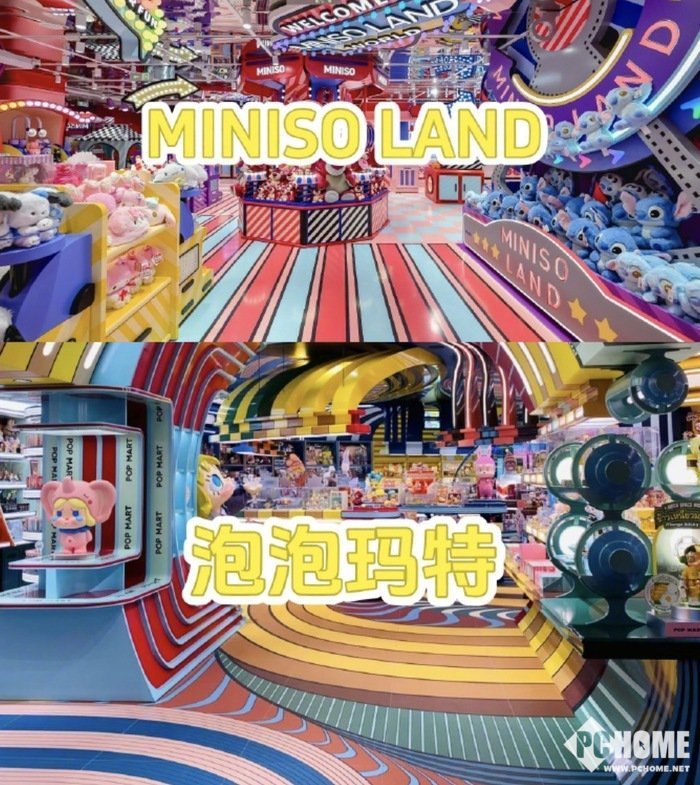 根据网友晒图,两家店均采用高饱和度色彩、流动线条区域划分以及游乐园式外观,并在天花板使用荧光色装饰。有观点认为,这种风格趋同可能与两家品牌的年轻潮玩消费定位有关,而并非直接模仿。也有消费者表示,两家店的产品类型差异明显,不至于造成混淆。目前,泡泡玛特与名创优品均未就相关质疑作出回应。