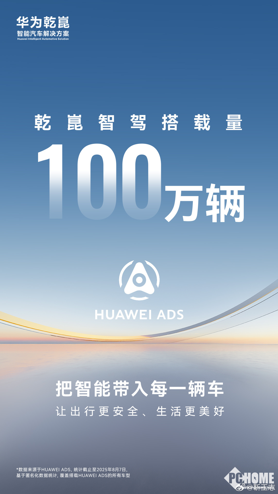 2025年8月12日,华为智能汽车解决方案BU CEO靳玉志在社交媒体平台发文称,搭载华为乾崑智驾的汽车突破100万辆。