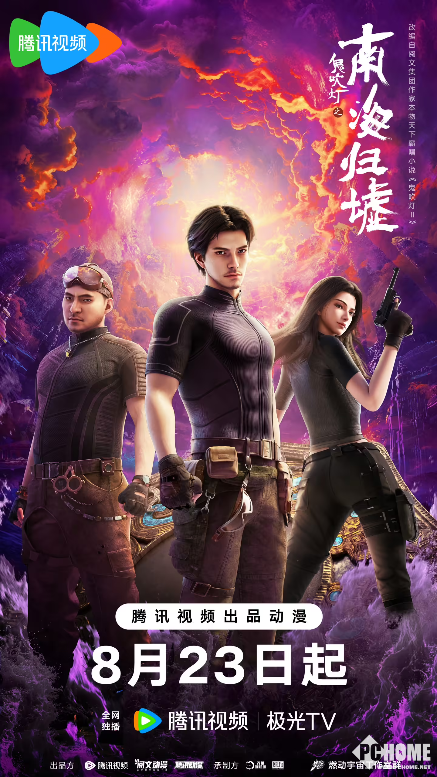 《鬼吹灯之南海归墟》将于8月23日在腾讯视频正式开播。该剧改编自作家天下霸唱的同名小说,由腾讯视频、腾讯动漫、阅文集团出品,万维猫动画与原力数字科技联合制作。