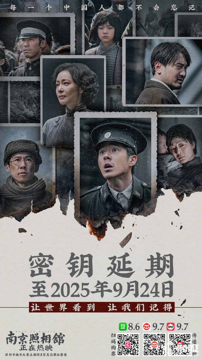8月12日,电影《南京照相馆》官方今日宣布,密钥延期至2025年9月24日。官方表示一张张底片中,封存着不会褪色的历史真相。暗房的灯光下,显影着未完待续的烟火人间。让世界看到,让我们记得。