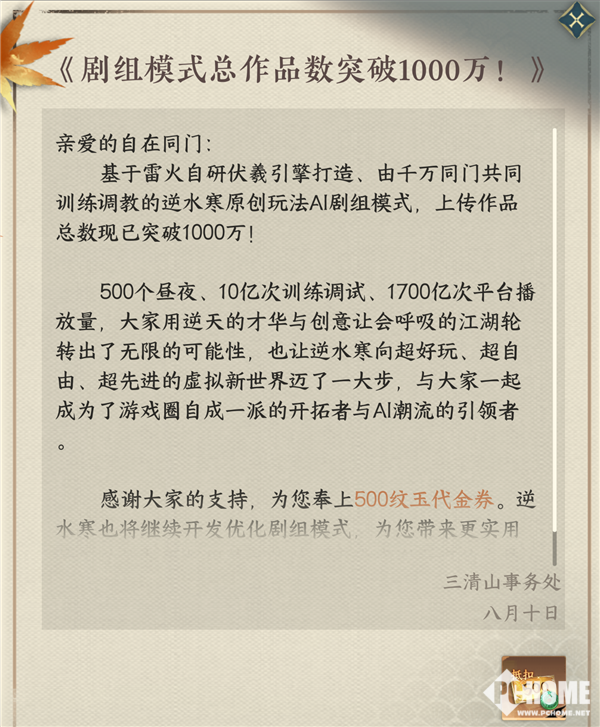 近日,网易旗下《逆水寒》手游宣布,其基于伏羲AI引擎开发的“剧组模式”用户生成内容(UGC)总量已突破1000万条,标志着MMO游戏内短视频生态完成规模化验证。