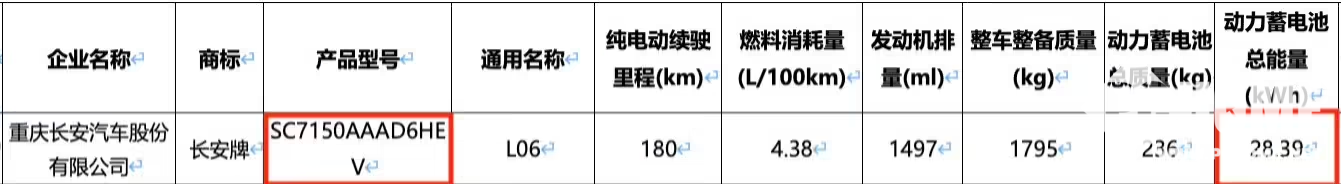 8月13日,工信部最新申报信息显示,深蓝L06增程版将配备容量为28.39千瓦时的磷酸铁锂电池组,纯电续航里程为180公里(测试工况暂未公布)。该车型采用深蓝自研的1.5L增程器,最大功率72kW,驱动电机峰值功率175kW,电池供应商包括时代长安、中创新航及重庆长安。