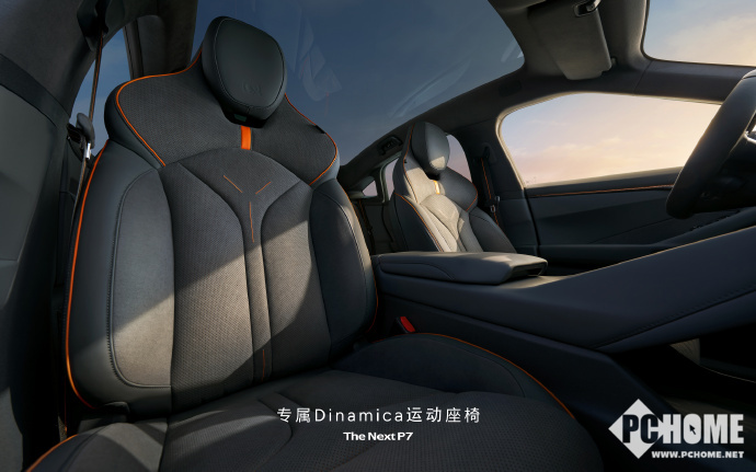 据官方图片,全新小鹏P7鹏翼门版拥有专属Dinamica运动座椅、专属橙耀灰内饰、专属熏黑迎宾踏板、专属枪灰色21英寸锻造轮毂、专属碳纤维饰板、专属碳纤维后视镜。