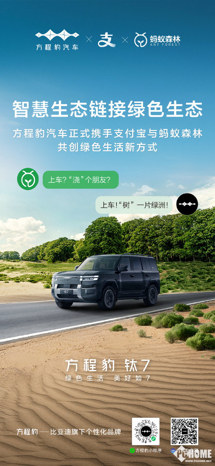 今日,比亚迪汽车旗下高端新能源品牌方程豹宣布与支付宝蚂蚁森林达成合作。
