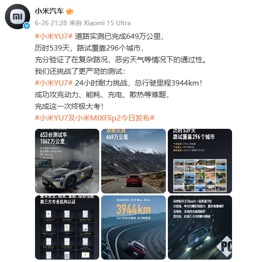 据了解,小米YU7曾在6月26日也完成了24小时耐力测试,据小米汽车官方发布,小米YU7道路实测完成649万公里,历时539天,路试覆盖296个城市,24小时耐力测试总行驶里程3944km。此次小鹏P7的24小时耐力测试打破了小米的纪录。