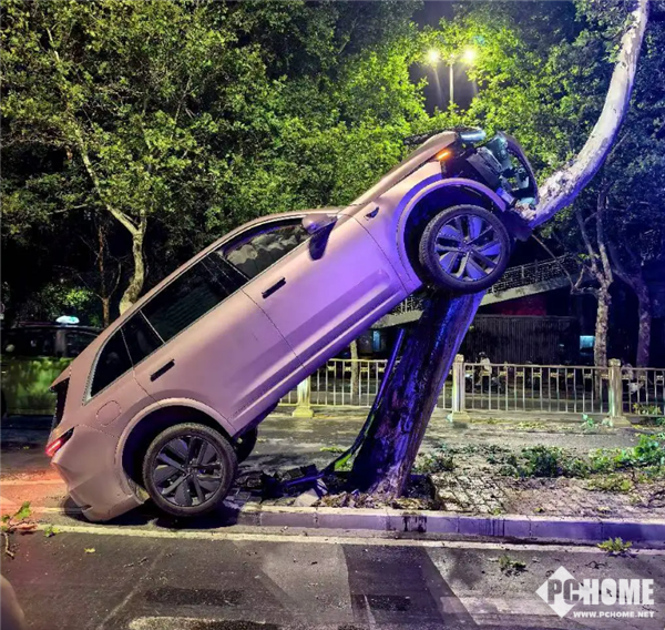百姓关注报道称,8月15日凌晨,陕西一辆理想SUV失控开上绿化带,最终冲到了树上。涉事车辆疑似理想L7,贴有改色膜,车顶有激光雷达,为AD Max车型,车头受损严重,被撞树木枝叶散落、树干偏移。