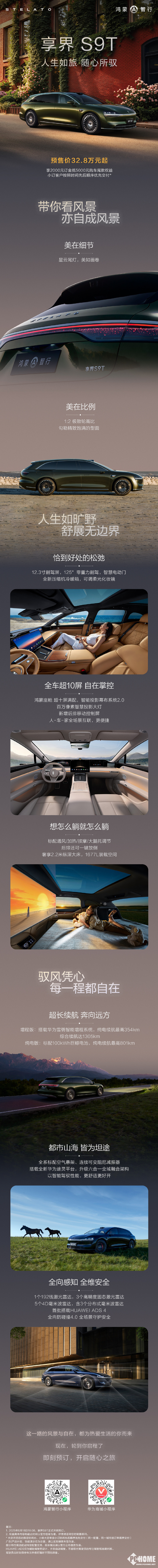 8月18日,鸿蒙智行首款旅行车享界S9T今日正式开启预售,预售价32.8万起。目前,享界S9T的仙踪绿、寰宇红双车色限时免费,标配赤茶橘、白沙杏内饰,还可享受2000抵5000元购车尾款权益。
