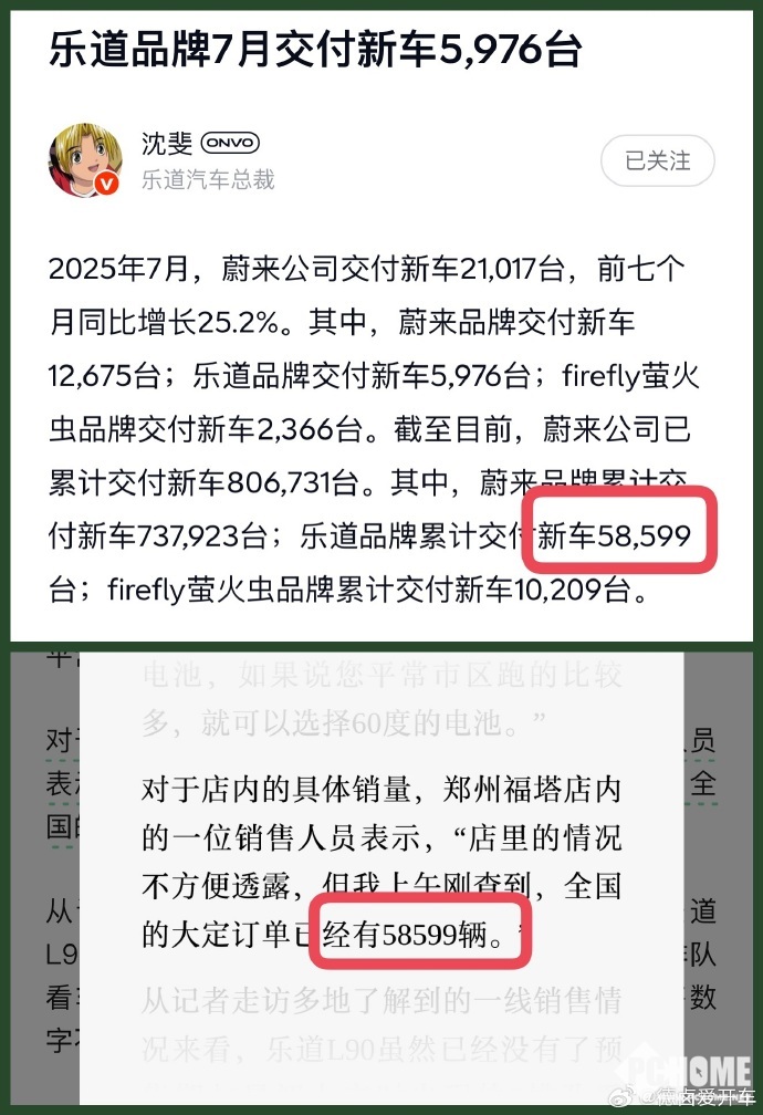 据了解,事件起因是媒体称乐道郑州福塔店店员称,乐道L90全国大定订单已经有58599辆。但实际上,该数据为沈斐此前公布的乐道汽车目前为止的累计交付量。沈斐也表示,大家也不要相信这些“据说”、“网传”等三方数据。乐道也不允许任何一位用户顾问、或者门店透露自己的数据,他们也没有权限看全国数据。