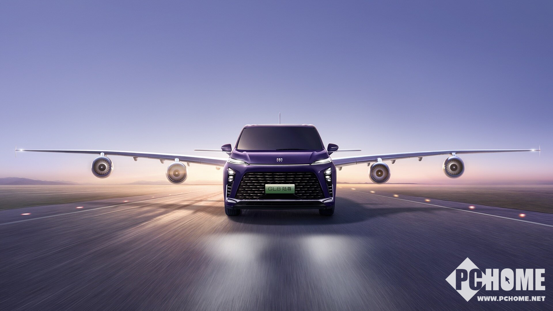 外观方面,新车采用紫气东来金属漆,漆面由超百万颗纳米级多色玻璃微珠构成,具备高反射和多层次视觉效果。前脸配备1.9米贯穿式大灯,车尾则搭载晶透云阶LED贯穿尾灯,车侧延续家族化商务车比例设计。