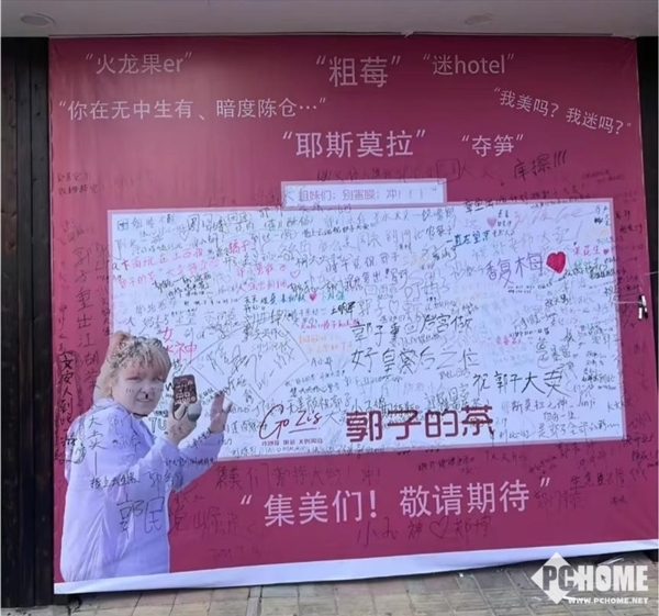 线下方面,门店在开业当天布置了带有“老郭喊集美喝茶了”的宣传海报,并设置了签名打卡区,吸引了不少粉丝前来。社交媒体上传出的图片显示,开业当天早晨门口就排起长队。有消费者表示,即便提前到达也难以在第一时间入店。