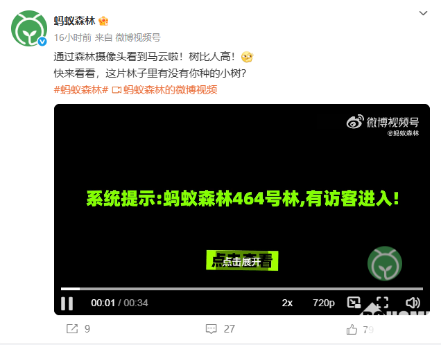 8月20日,蚂蚁森林官方昨日在社交媒体平台发布视频,阿里巴巴创始人马云时隔六年再次探访蚂蚁森林。