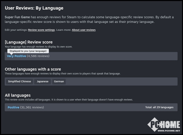 根据Valve公布的细则,当一款游戏的总评测数量超过2000条,且某一语言的评论超过200条时,该语言将被单独计算出评分并优先展示。玩家仍可选择查看全球总评或其他语种评价,但区域性评分的权重将被大幅提升。
