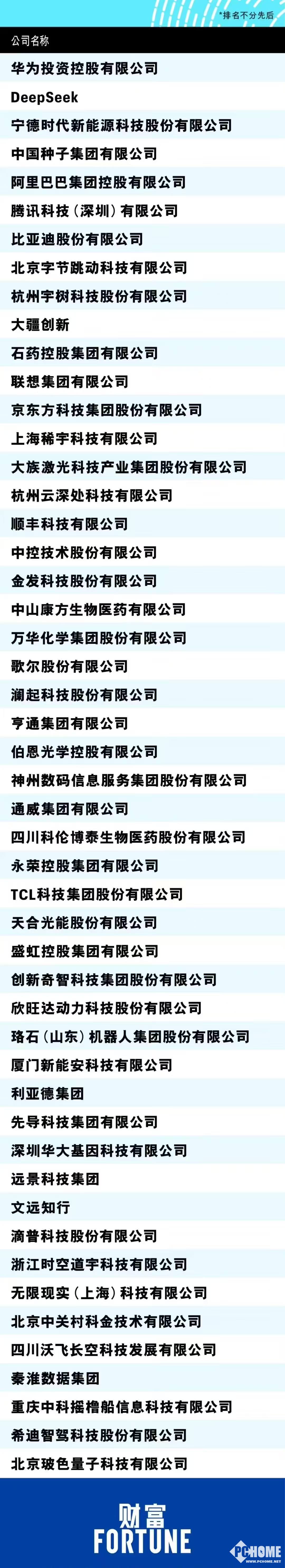 除上述公司外,阿里巴巴、腾讯、比亚迪、字节跳动等知名科技企业也跻身该榜单。值得注意的是,不少新兴科技公司如宇树科技、稀宇科技、玻色量子等同样凭借在细分领域的创新表现获得认可。
