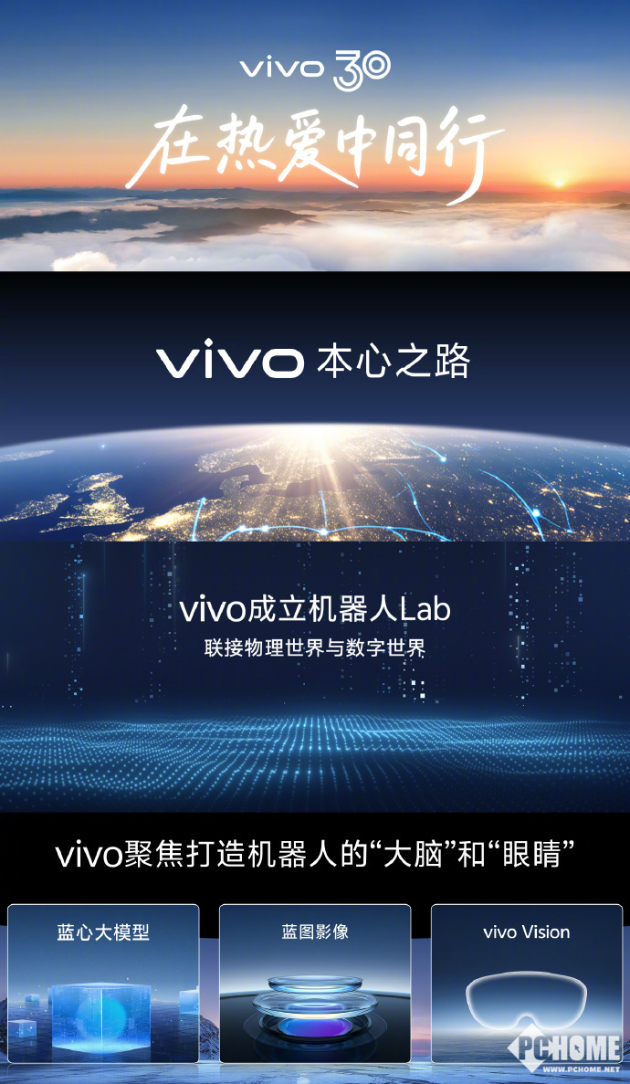 vivo官方表示,vivo 30年的本心之路,是以科技为基、人文为魂的热爱之路,是同心共赢、携手并肩的同行之路,是用户至上、雕琢极致的产品之路。这条路的方向是让科技照亮美好未来,终点是抵达每一位用户。