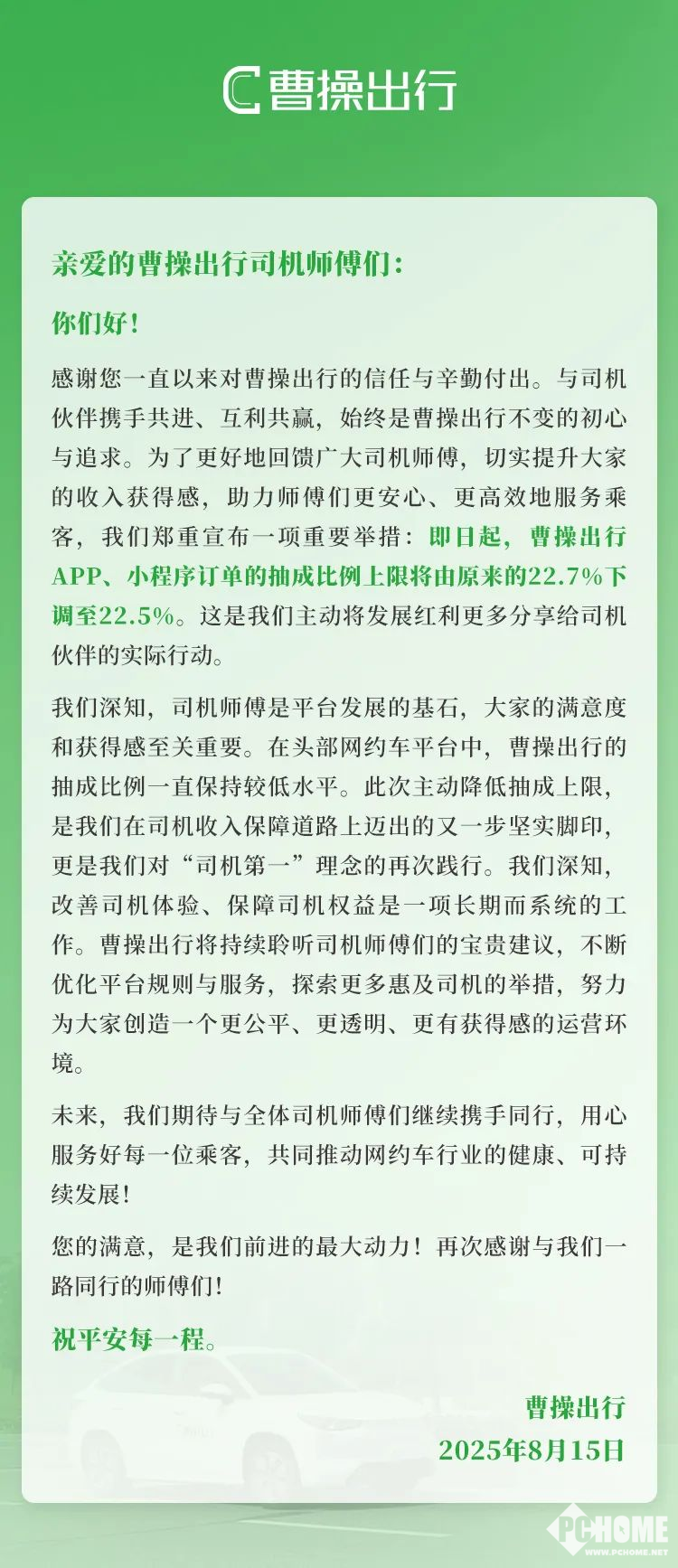 据了解,滴滴出行将在今年年底之前,将每笔订单最高抽成上限从原来的29%降至27%,超出27%的部分将随单返还。T3出行也发布公告称,将在今年年底前,把抽成比例26%-27%的订单数量占比从21%降至17%。曹操出行则表示,会将订单的抽成比例上限由原来的22.7%下调至22.5%。